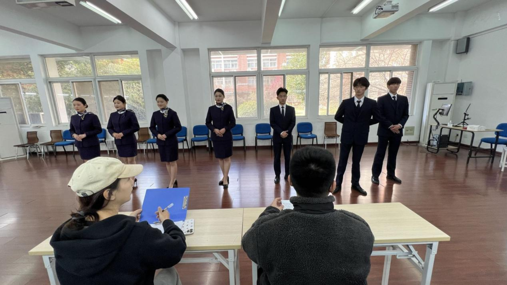 为提高民用航空系学生的综合素质,塑造其专业形象,为航空事业的发展储备优秀人才。3月19日,我系空中乘务专业学生在5109实训室举办”航空服务礼仪大赛暨面试技巧指导”活动。本次大赛围绕即将实习的 2022级学生展开,通过此次大赛有效推进了我系“以赛促学,以赛促教,学赛结合教学模式的改革。专业教师朱枫和辅导员顾轩宇担任面试官。