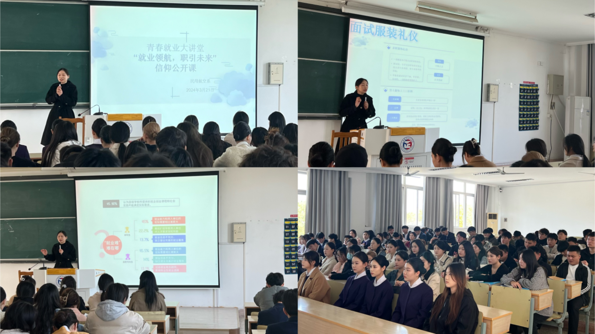 为全面落实团中央“共青团促进大学生就业行动”的要求,推进就业领航计划走实走深,引导大学生树立正确的就业观和择业观。3月22日,民用航空系开展“就业领航,职引未来”主题信仰公开课,邀请了南京江宁丽湖酒店人事部仲经理来校做就业指导。