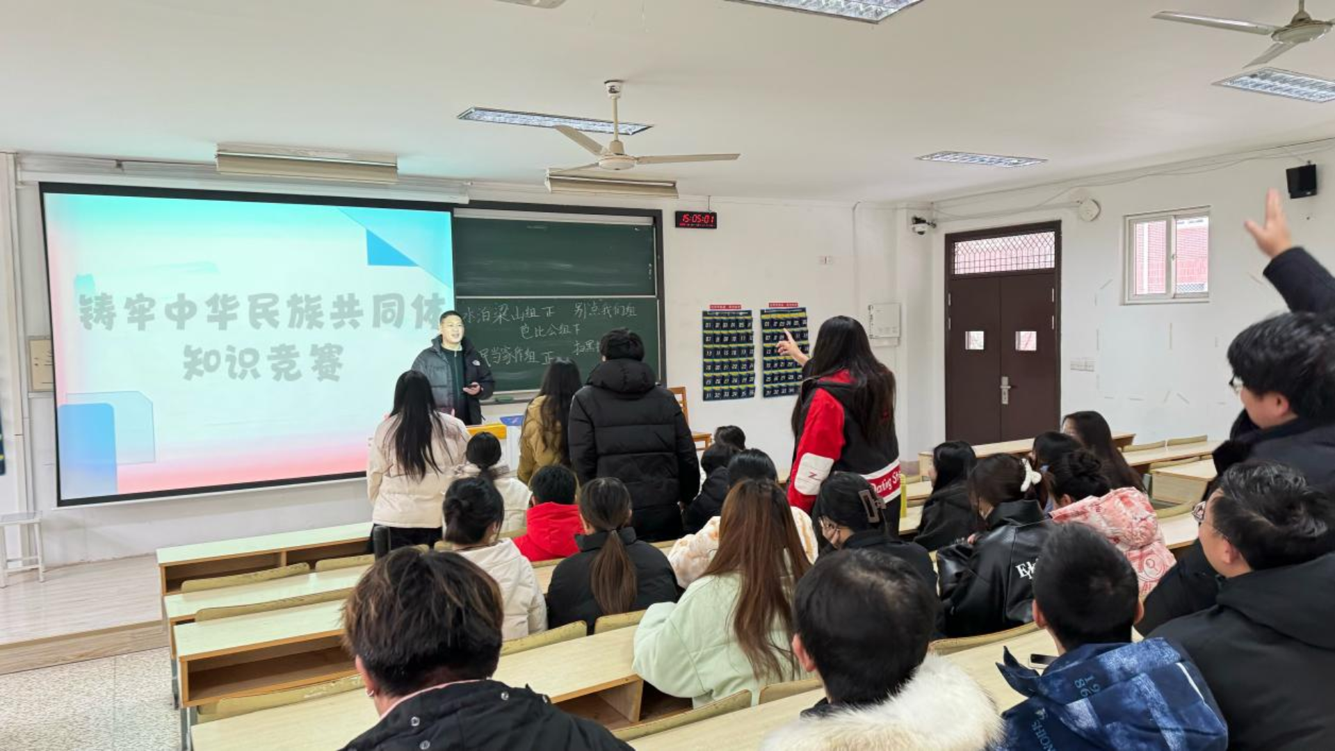 为深入学习贯彻党的二十大精神,坚定师生理想信念,有形有感有效抓实做细铸牢中华民族共同体意识的各项工作,进一步铸牢中华民族共同体意识入脑入心,传承石榴籽精神,浇开民族团结花。民用航空系于12月20日在1202教室举行铸牢中华民族共同体意识知识竞赛。