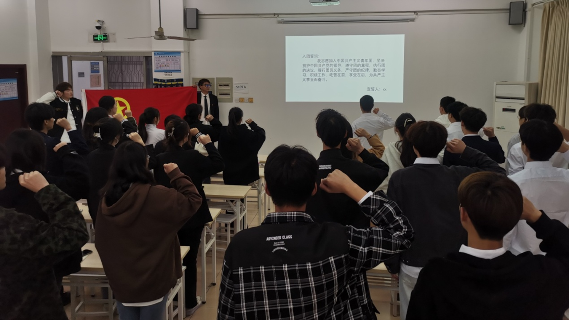 组织团员重温入团誓词。引导广大团员青年不忘初心,牢记使命,勇敢地承担起祖国的重托,把自己的人生理想与祖国、与时代紧紧联系在一起,做新时代的社会主义事业的建设者和接班人,以更强的历史责任感和使命感,不负党对年轻人的无限厚望,让青春与党同行。