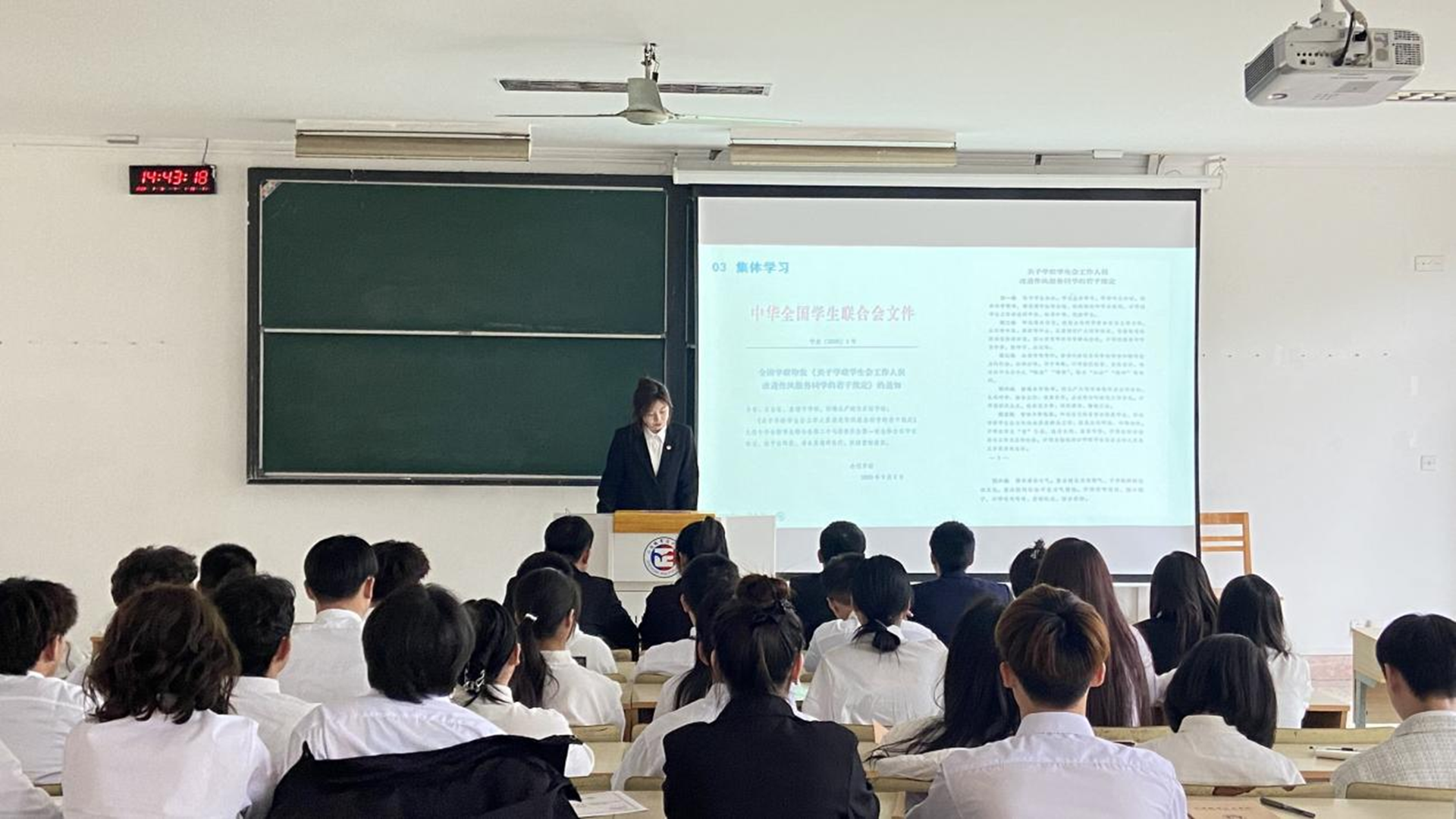 会上,对上学期学生会工作进行了表彰。系团总支书记陈瑶老师对上学期学生会干部的表现给予了充分的肯定,对大家的积极态度及奉献精神进行了表扬,但也指出了在工作方式方法、自我约束、服务意识、公平公正、容忍度等方面存在的问题。同时,对新学期学生会的工作进行了部署和要求:一是要树立规矩意识和底线思维;二是要有高度的集体荣誉感,凝心聚力干工作,团结一致共提升;三是要树形象、做表率,处处严格要求自己;四是要在工作上出彩,在新学期即将开展的多项活动中拿成绩、争一流;五是要织密网格,及时发现并反馈问题。最后希望全体干部在新学期再接再厉,奋发有为,不断践行服务同学的宗旨,提升服务同学的能力,汇聚青春力量,助力院系发展,继续发挥榜样带头作用。接着虞骏卿就学生会的性质及任务、加入学生会的目的是什么、如何做好学生干部、学生干部应具备的思想觉悟、行为表现、与时俱进、审美观念等内容进行论述。虞骏卿强调,学生会干部是学校的先进分子,是自愿为同学服务的积极分子,所有学生会干部在提供服务的同时,也在不断提高自己的工作能力和管理水平。最后,他希望每一位学生会干部都能积极上进,以身作则,当好标兵,做好先锋,突出表率作用,努力提高自己的工作能力,做到工作、学习两不误。最后学生会集体学习《关于学联学生会工作人员改进作风服务同学的若干规定》。