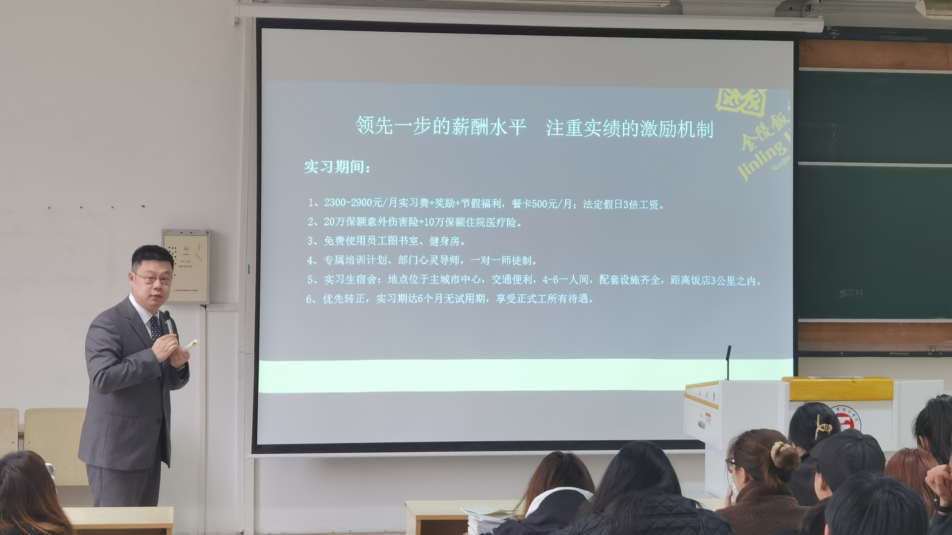 这次南京金陵饭店集团有限公司提供的都是为培养技术技能型人才和基层管理人员做储备的岗位,就业前景十分广阔。宣讲会上,企业负责人为同学们详细介绍了成人抖音、企业概况、员工的薪酬福利待遇以及住宿情况,重点讲解了本次宣讲的岗位信息和岗位发展的空间。宣讲结束后大家对关心的问题进行了提问,企业负责的同志一一作了解答。