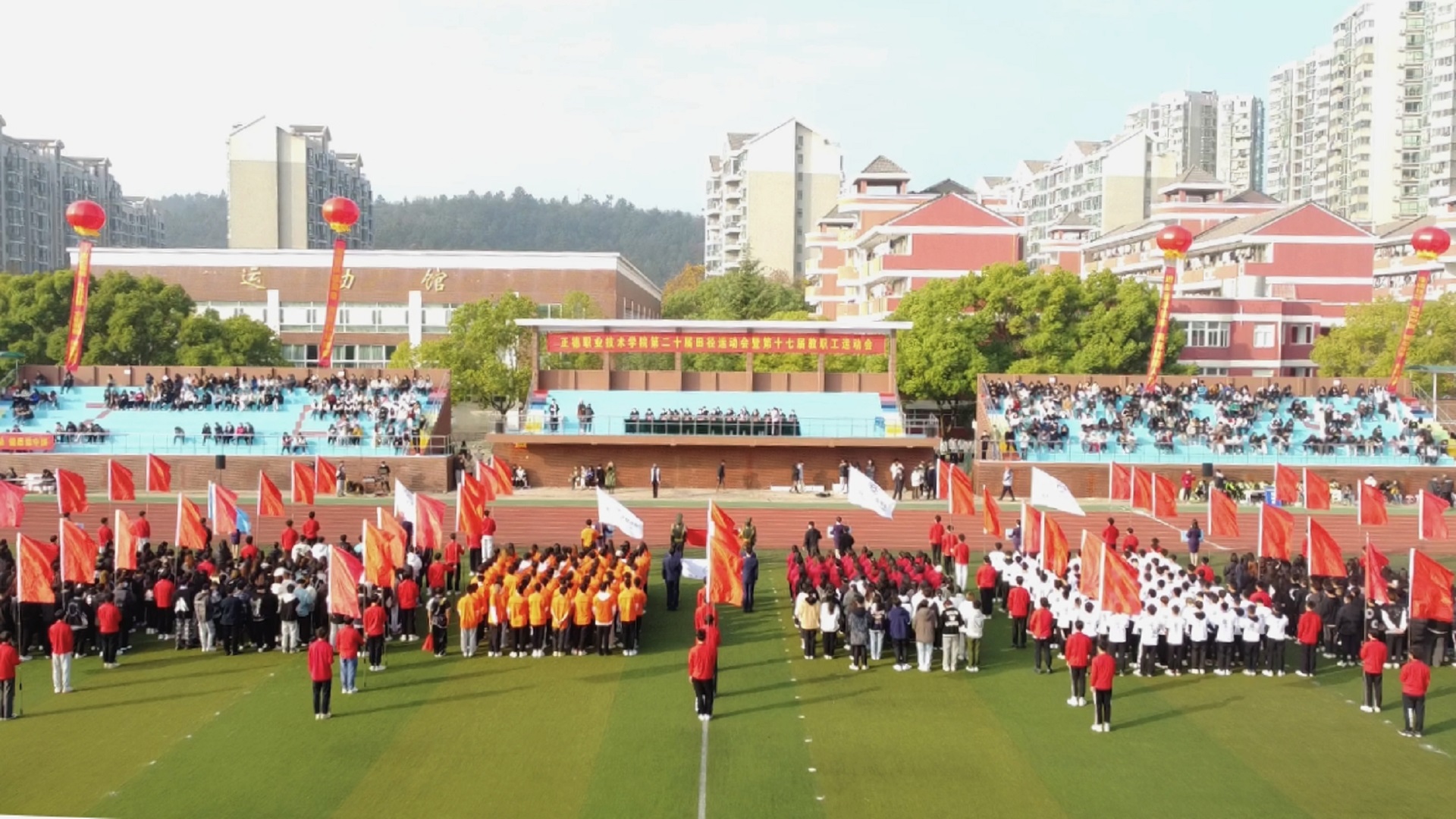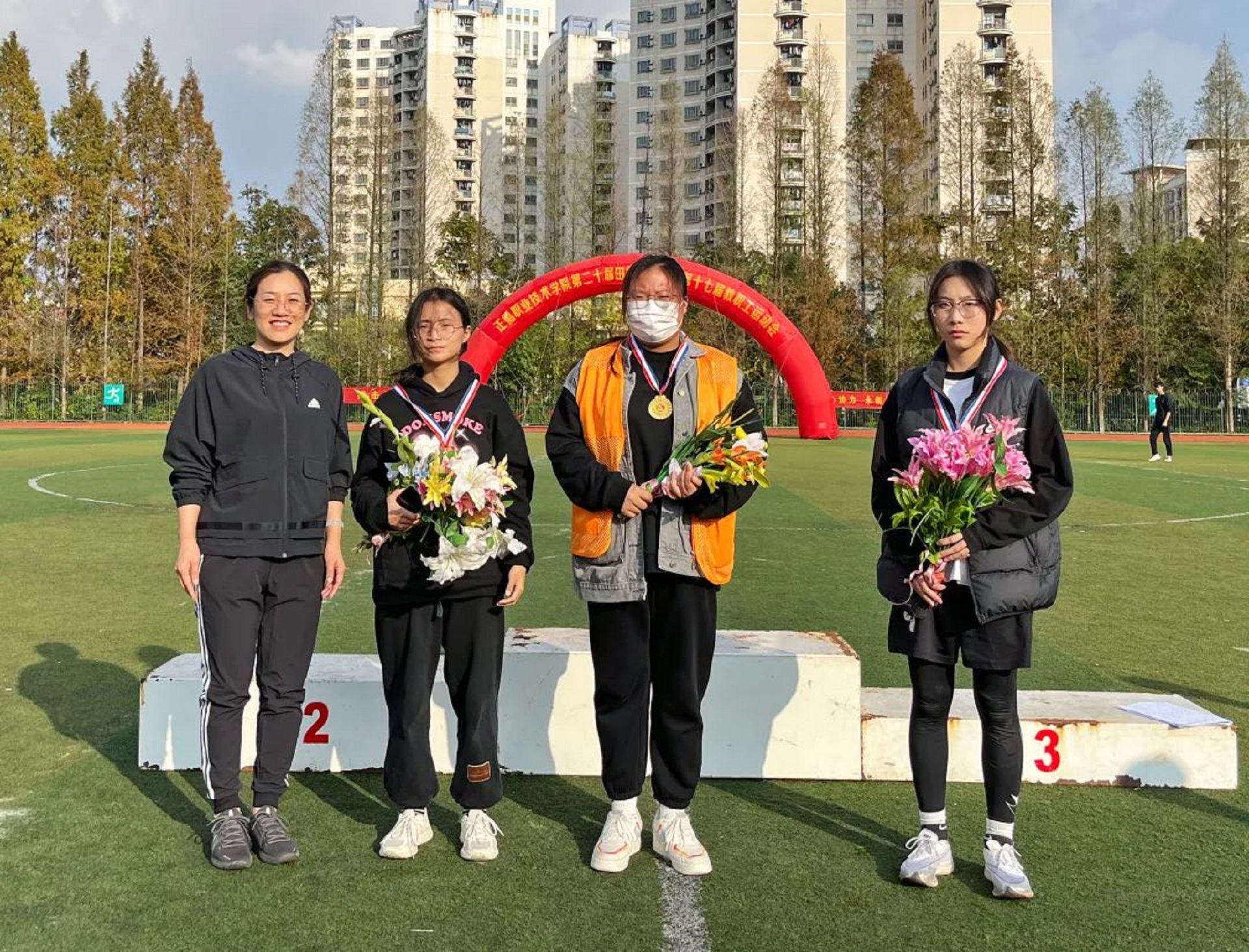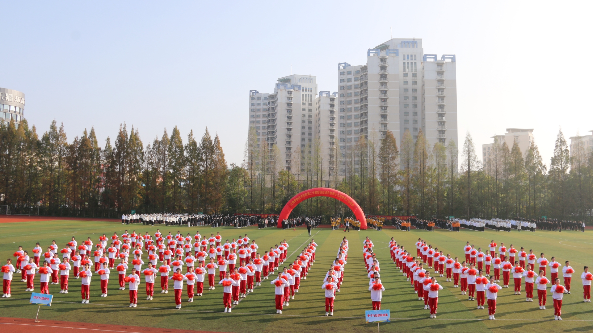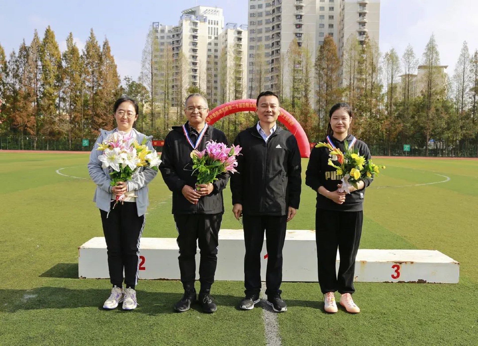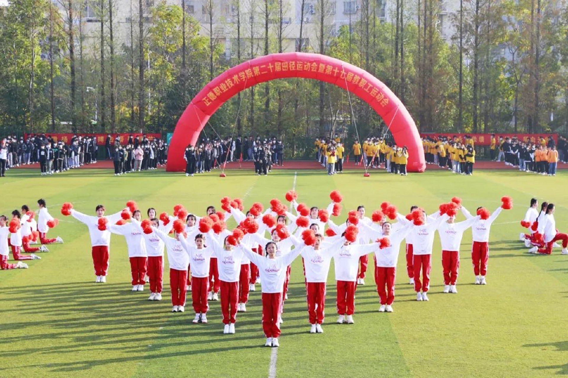 11月24日,迎着晨曦,彩旗飘扬,学院田径场呈现一片欢乐的海洋。成人抖音 第二十届田径运动会暨第十七届教职工运动会在这里隆重举行。院长庄群华,党委书记孙雷,副院长高斌、江爱华、赵凯雷、任慈以及其他院长办公会成员和各系部主任出席了开幕式。开幕式由副院长任慈主持。