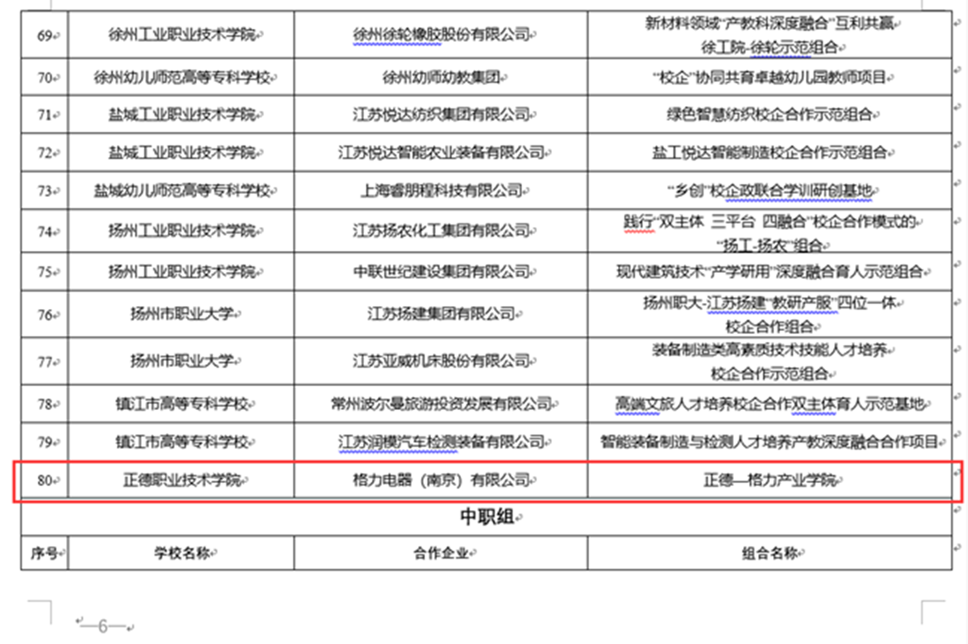 近日,省教育厅正式发布了2022年江苏省职业教育校企合作示范组合培育项目评审结果,根据《省教育厅关于开展2022年江苏省职业教育校企合作示范组合培育工作的通知》(苏教职函〔2022〕27号)要求,成人抖音 与格力电器(南京)有限公司合作的“正德—格力产业学院”成功获批。