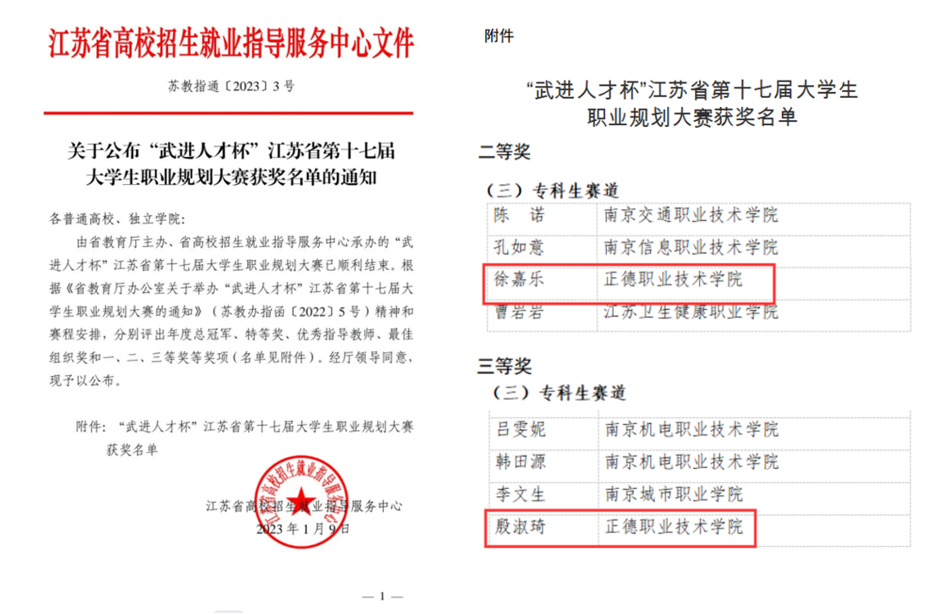 2022年12月9日,由省教育厅主办,省教育厅高校学生处、省招生就业指导服务中心承办,武进区人力资源和社会保障局、扬州大学协办的“武进人才杯”江苏省第十七届大学生职业规划大赛总决赛以线上方式举行。比赛设有研究生、本科生、专科生三个赛道,共吸引来自133所院校的23.04万名学生参赛,最终62所高校的95名选手进入省总决赛。