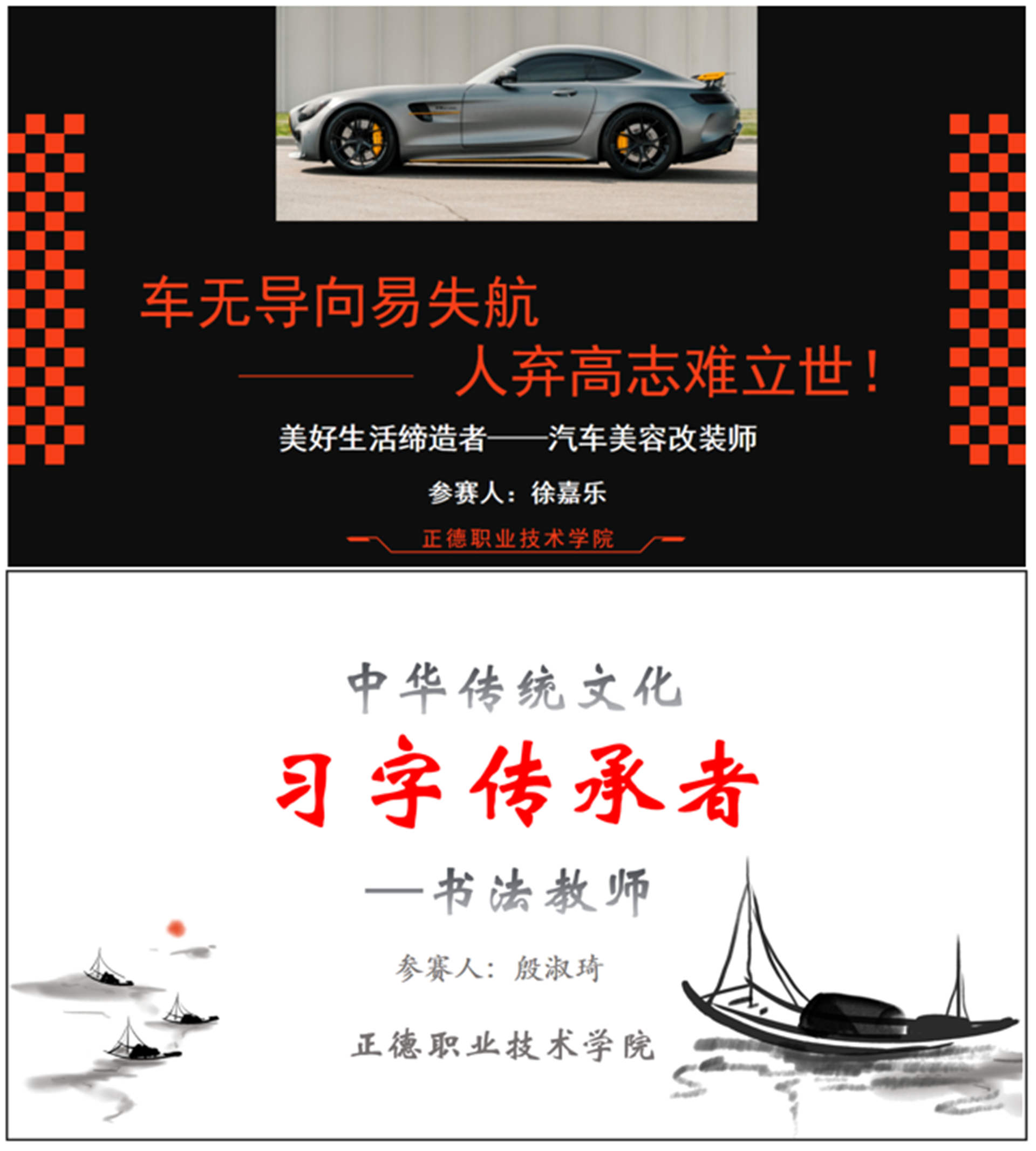 经过多轮比赛的激烈角逐,成人抖音 汽车与机电工程系徐嘉乐同学的参赛作品:美好生活缔造者——汽车美容改装师的职业之路,荣获省专科生赛道二等奖;民用航空系殷淑琦同学的参赛作品:中华传统文化习字传承者——书法教师的职业之路,荣获省专科生赛道三等奖。