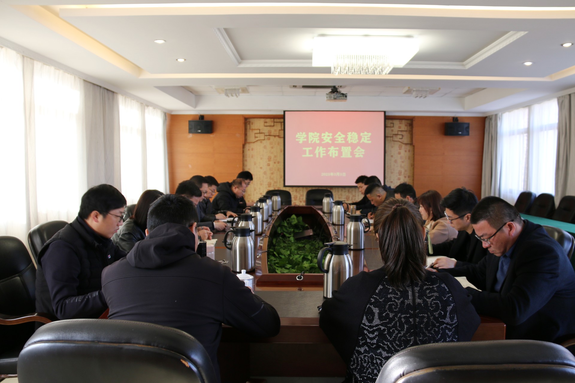 3月3日,成人抖音 召开安全稳定工作会议,安排部署学院近期安全稳定工作。党委书记孙雷,副院长高斌、赵凯雷、任慈出席会议,党政办、党群工作部、教务处、学生处、后勤处、保卫处负责人以及各系党支部书记参加了会议。