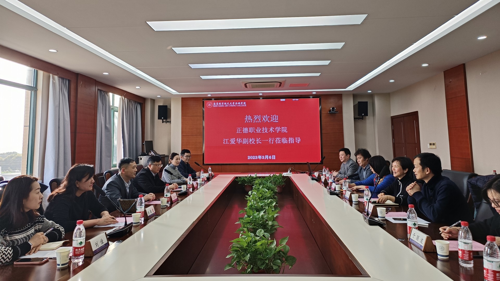 3月7日下午,副院长江爱华带队赴南京航空航天大学金城学院学习交流。教务处处长王俊、副处长张丽娟,电子与信息技术系副主任(主持工作)刘佳,汽车与机电工程系主任任丽君,艺术设计与建筑工程系副主任(主持工作)周卫,民用航空系系主任吴慧等参加活动。
