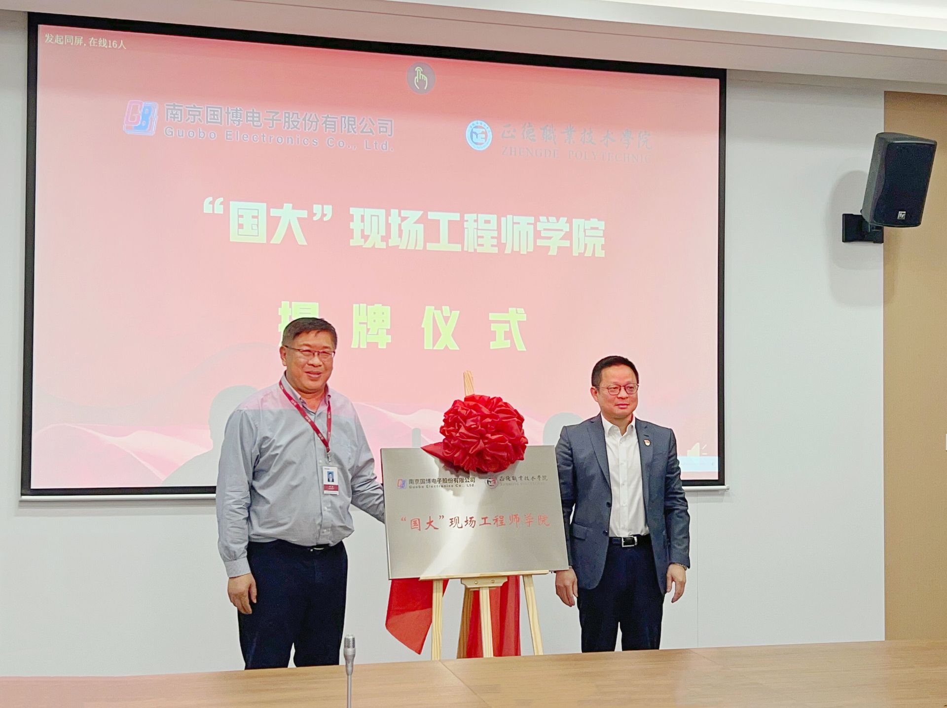 孙雷与杨磊为“国大”现场工程师学院揭牌。