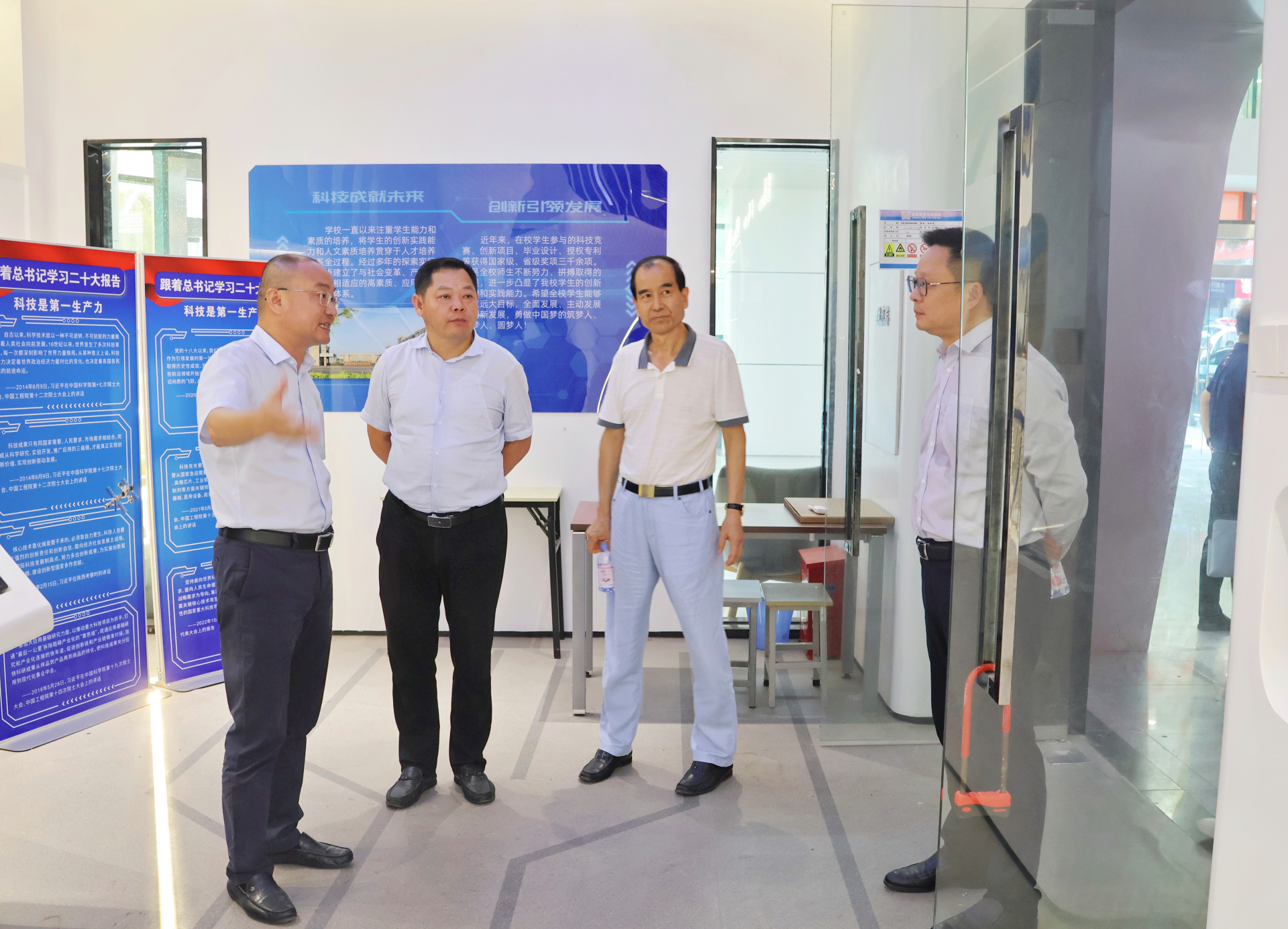 曹忠葆、陈旭、戴泉晨等领导还全程陪同成人抖音 一行参观了金城学院图书馆、机电工程与自动化学院实验室、创新实践基地、航空科技馆。