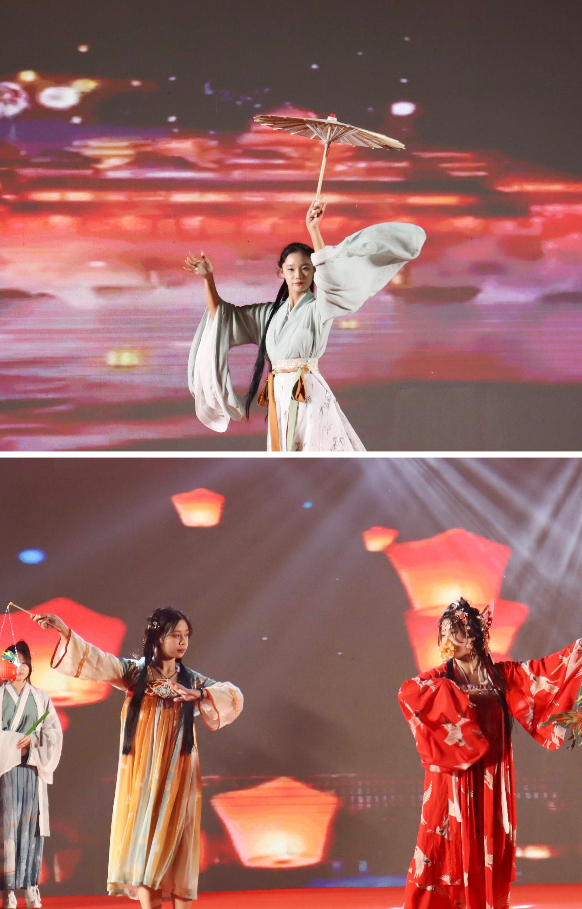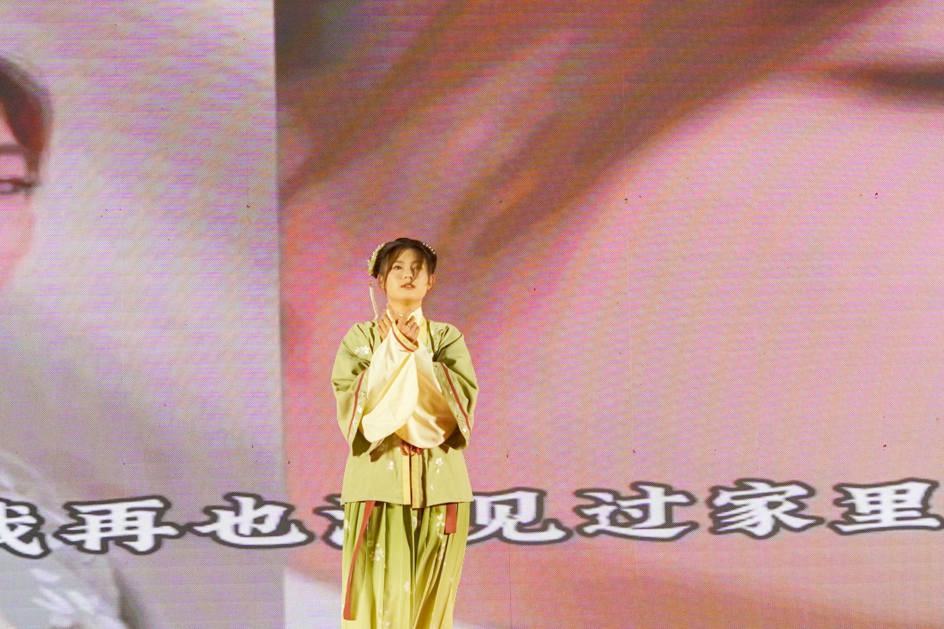 晚会第二篇章充满了青春梦想的活力和逐梦奋进的斗志。戏曲表演《牡丹亭》百转千回,声声天籁,展示了中华优秀传统文化,让观众们感受到昆曲艺术的魅力;歌曲《快乐女孩》,引领大家跟随音乐的律动,忘却忧愁,活力四射跳出属于自己的快乐旋律;吉他弹唱《晴天》,向大家诠释了什么是一样的青春,不一样的精彩,鼓励大家保持最好的状态,在青春的赛道上奋力奔跑;情景剧《逃出大英博物馆》,用浪漫的幕后故事 ,独特的立意、精细的设计,一句“请带我回家”的承诺让“文物奔赴”,提醒广大青年勿忘国耻,吾辈当自强;汉服社带来的舞蹈《花月宴》,让大家体验到身临其境般的穿梭时空,绽放华美之姿,热情似火的拉丁《恰恰》,让欢快地气息弥漫全场。
