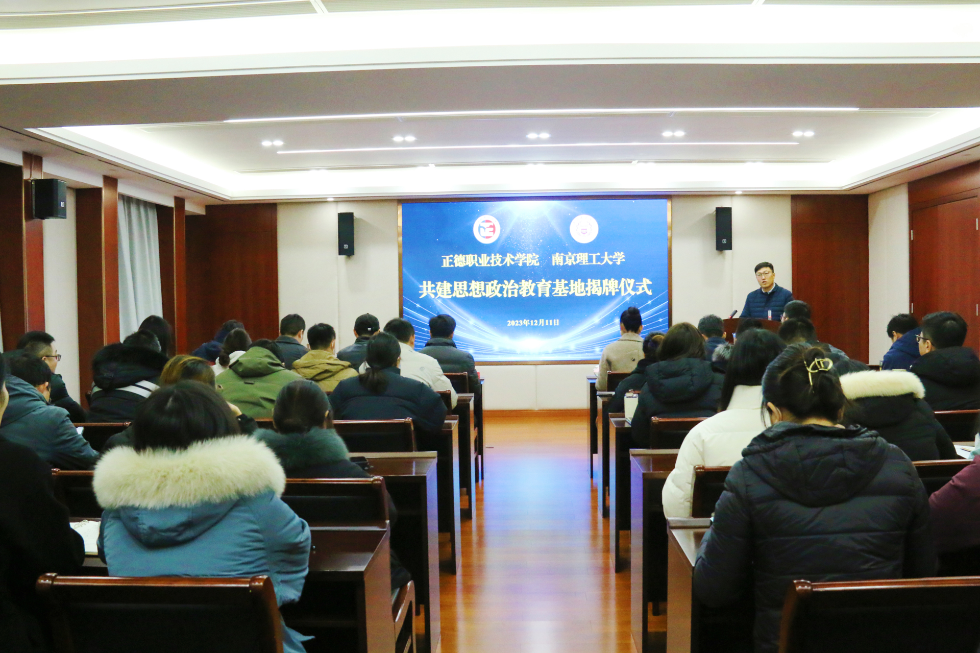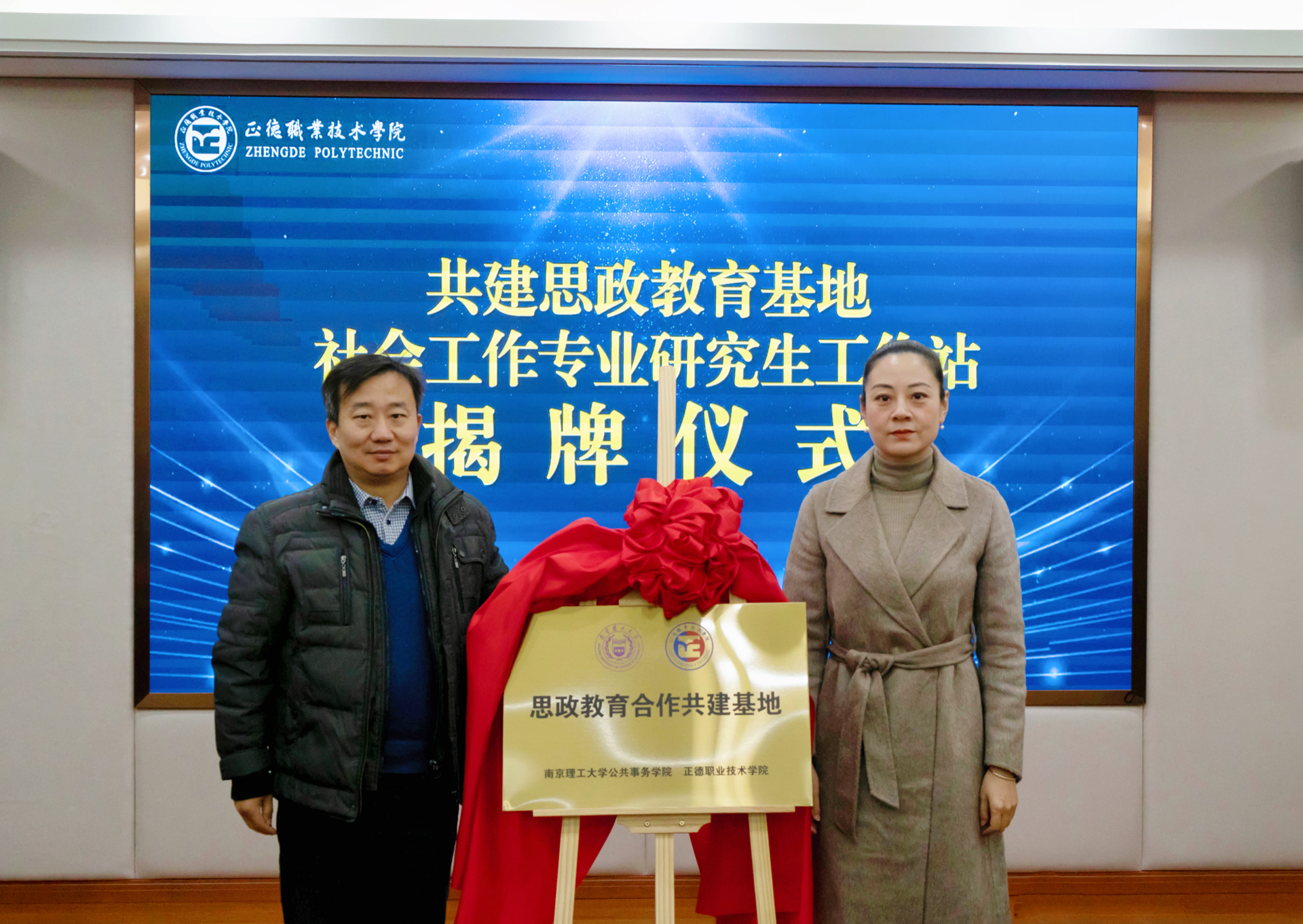12月11日上午,成人抖音 联合南京理工大学举行了思政教育合作共建基地暨社会工作专业研究生工作站揭牌仪式。南京理工大学公共事务学院副院长赵奇栋,学院党委副书记、副院长梁薇,院长助理王健,南京理工大学公共事务学院专业教师、研究生代表,学院党群工作部、党委学工部、团委负责人、各系党支部书记及全体辅导员参加会议。党委学工部部长、学生处处长祝佳俊主持会议。