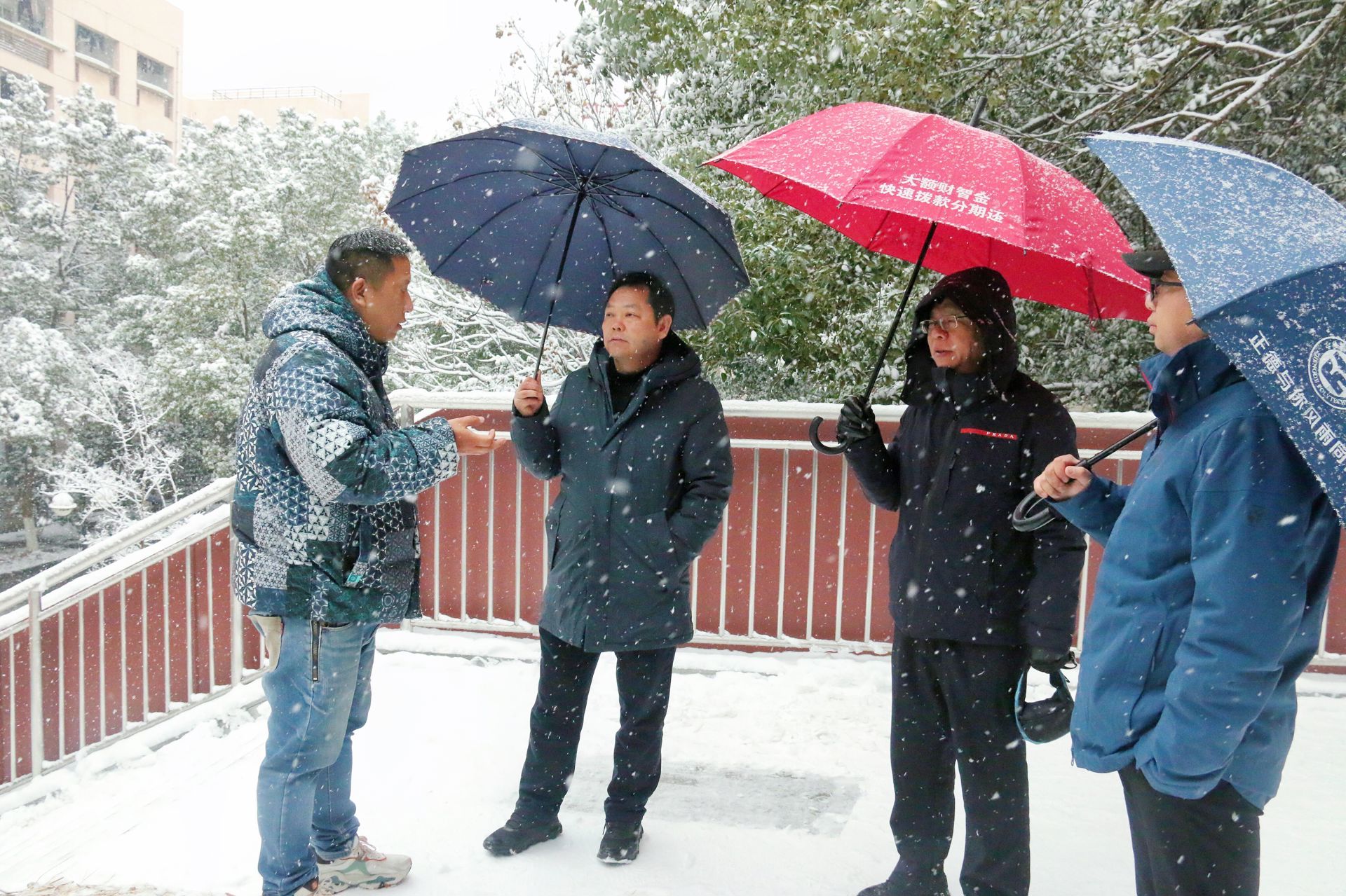 院领导先后深入到教学区、学生公寓、食堂、过街天桥等地,详细了解防冻抗雪应急预案落实情况,并对各项应对措施提出了明确要求。