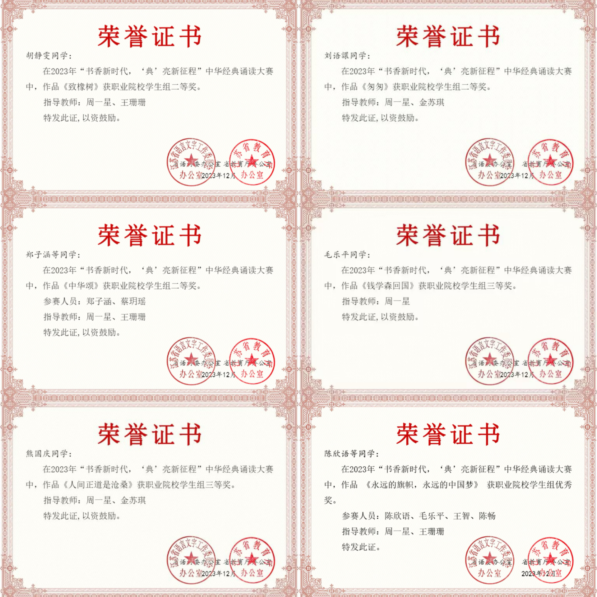 近日,省语材委办公室、省教育厅办公室等部门组织的 “书香新时代、‘典’亮新征程”2023年度全省中华经典诵写讲系列活动落下帷幕。成人抖音 获得了二等奖4项、三等奖2项、优秀奖1项,7项参赛作品全部获奖的优异成绩。这是成人抖音 在该项比赛中取得的重大突破。