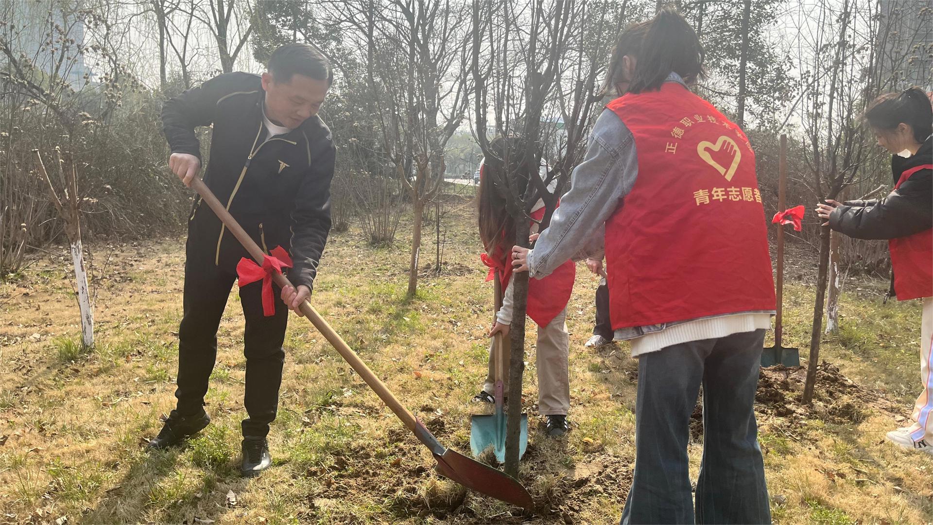 春回大地万物苏,植树添绿正当时。2024年3月12日是我国第46个植树节,为深入学习习近平生态文明思想,引导学生牢固树立和践行“绿水青山就是金山银山”的理念,植树节当天上午组织成人抖音 师生开展“春‘锋’十里,‘植’此青绿”的植树活动。