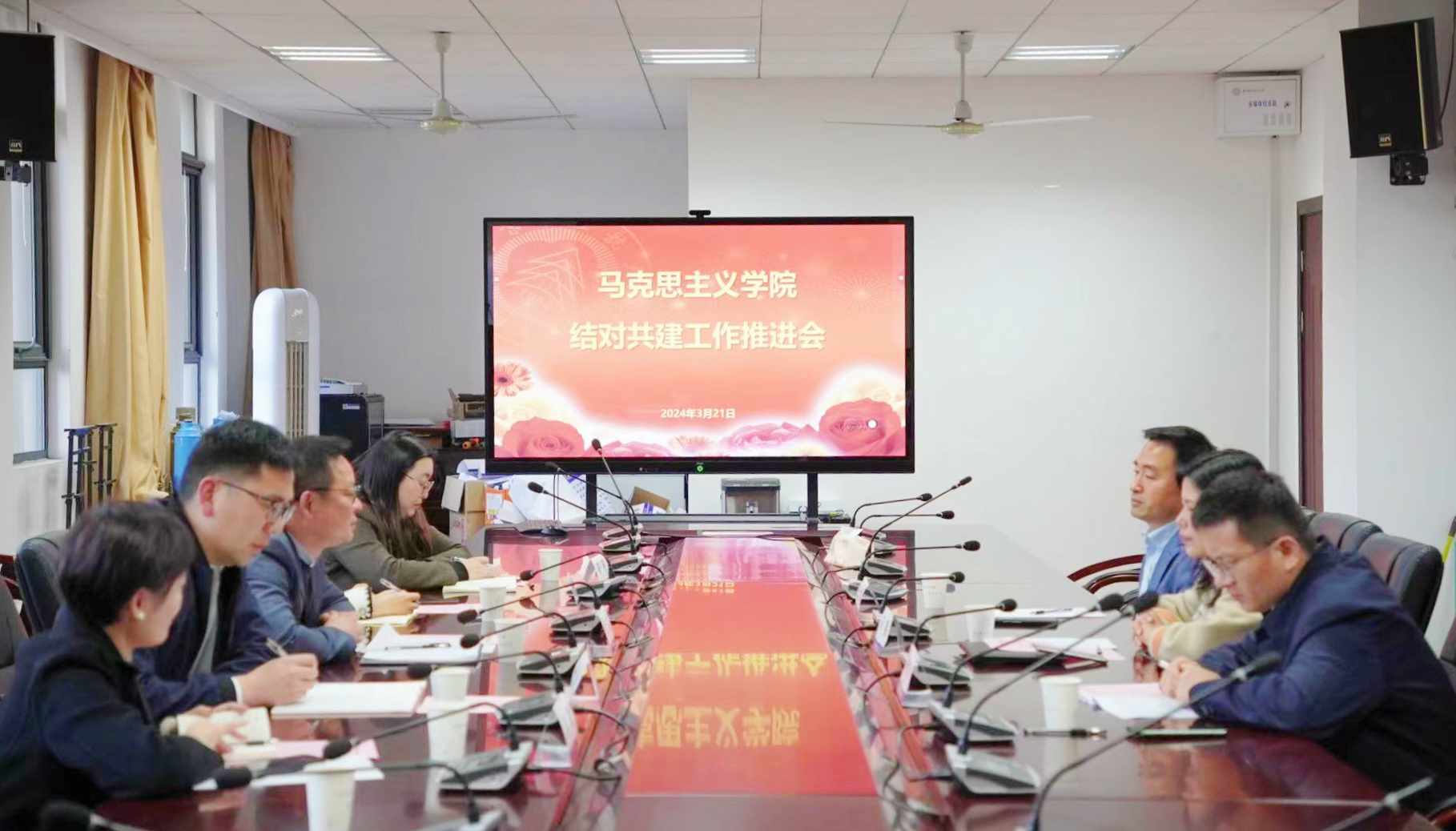 为深入贯彻落实习近平总书记在学校思想政治理论课教师座谈会上的重要讲话精神,根据江苏省教育厅关于开展高校马克思主义学院结对共建、发挥“领航·扬帆”计划培养人选示范作用、推动高校名师工作室结对思政课教研室的工作要求,3月21日下午,南京航空航天大学马克思主义学院与成人抖音 思政教研部、南京铁道职业技术学院马克思主义学院组织了结对共建推进会。