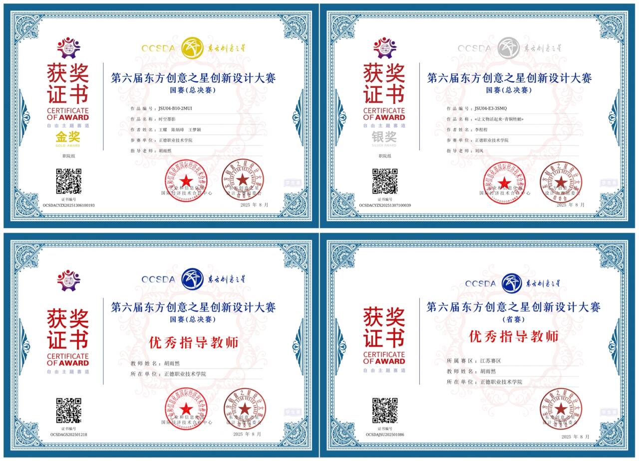 在近日落幕的第六届“东方创意之星”设计大赛中,成人抖音 艺术设计与建筑工程系数字媒体技术专业2024级学生取得了优异成绩,展现了卓越的创造力和专业技能。胡雨然老师凭借出色的指导,分别荣获省赛和国赛优秀指导教师奖,彰显了成人抖音 专业教学的高水平。