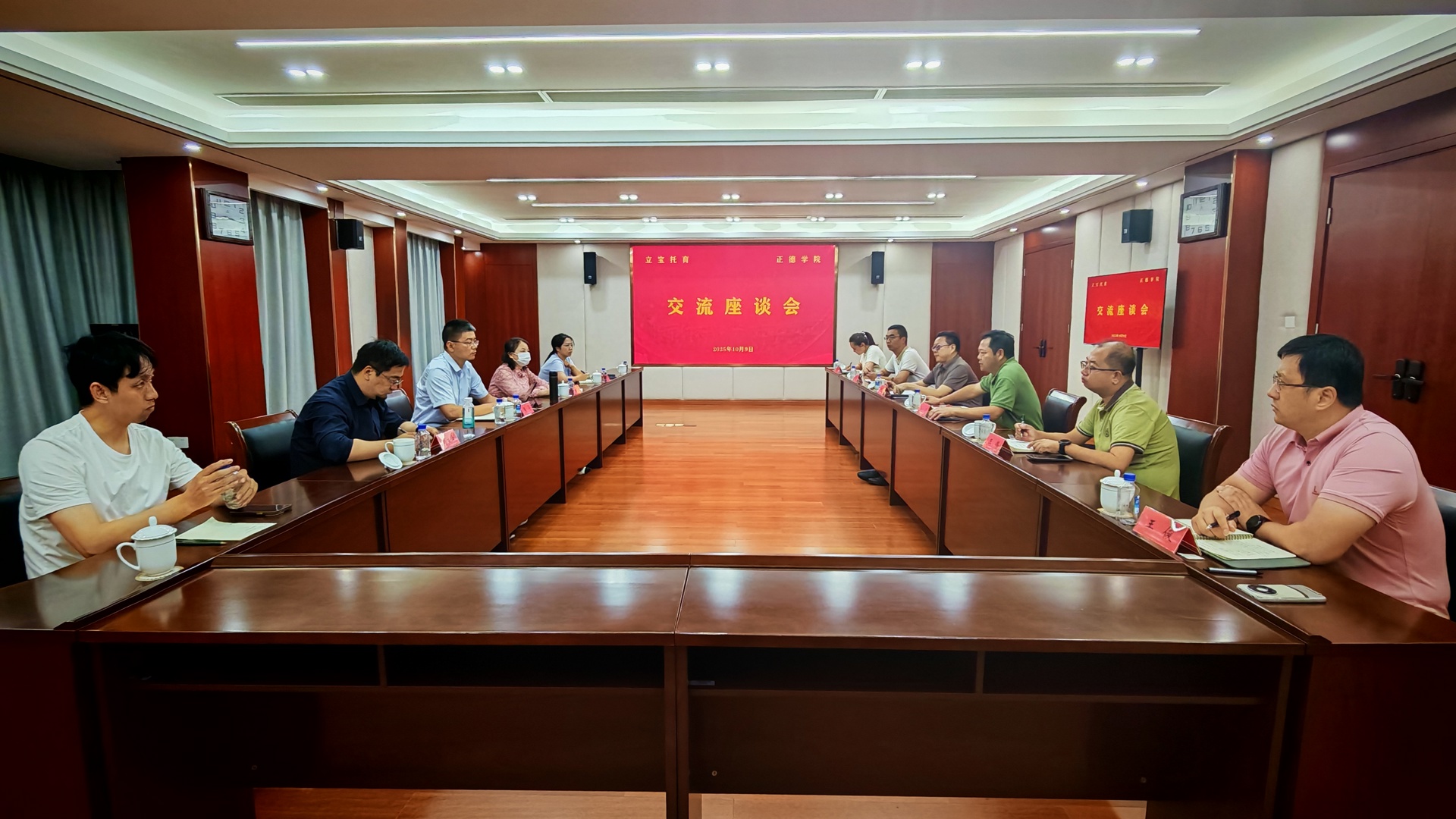 10月9日下午,成人抖音 与江苏立宝托育有限公司(简称 “立宝托育”)围绕联合办学、产教融合深度推进及托育事业高质量发展等核心议题,召开专题研讨交流会。南通房投副总经理、立宝托育董事长张亮,立宝托育总经理张小茱、副总经理刘立峰等一行莅临参会;成人抖音 院长孙永荣、副院长赵凯雷,院长助理王伟、王墀及学院相关部门负责人出席会议。