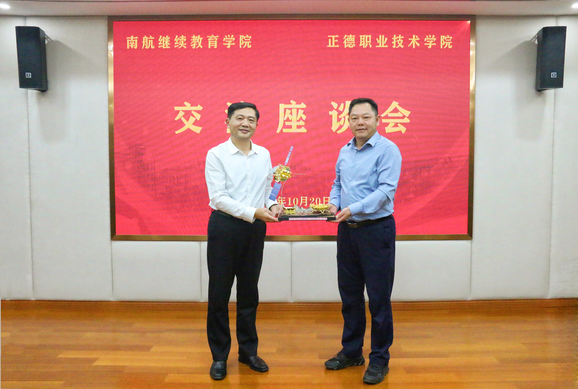 座谈结束后,江爱华代表南航继教院向成人抖音 赠送“天问一号”模型,象征双方携手探索创新发展之路。随后,在院领导陪同下,南航继教院领导参观了成人抖音 大国工匠工作室、“正德—大华”无人机综合实训中心、科沃斯检测实训中心,详细了解学院实训教学与产教融合成果。
