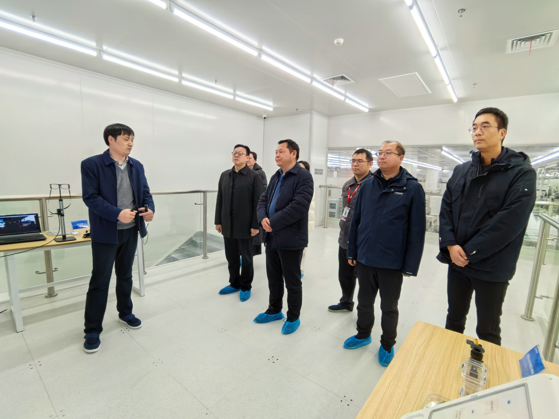 会前,孙永荣一行在杨建兵等的陪同下参观了国兆光电的生产线,实地考察了学生实习就业环境与企业生产技术需求。