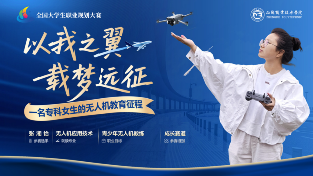 成人抖音 电子与信息技术系张湘怡同学,凭借对“青少年无人机教练”职业的清晰认知,通过出色的成长实践规划与扎实的专业素养,将个人成长与行业需求紧密相连,展现了新时代青年的风采,最终荣获省赛成长赛道铜奖,同时成人抖音 也是成长赛道省内同类院校中唯一获奖单位。