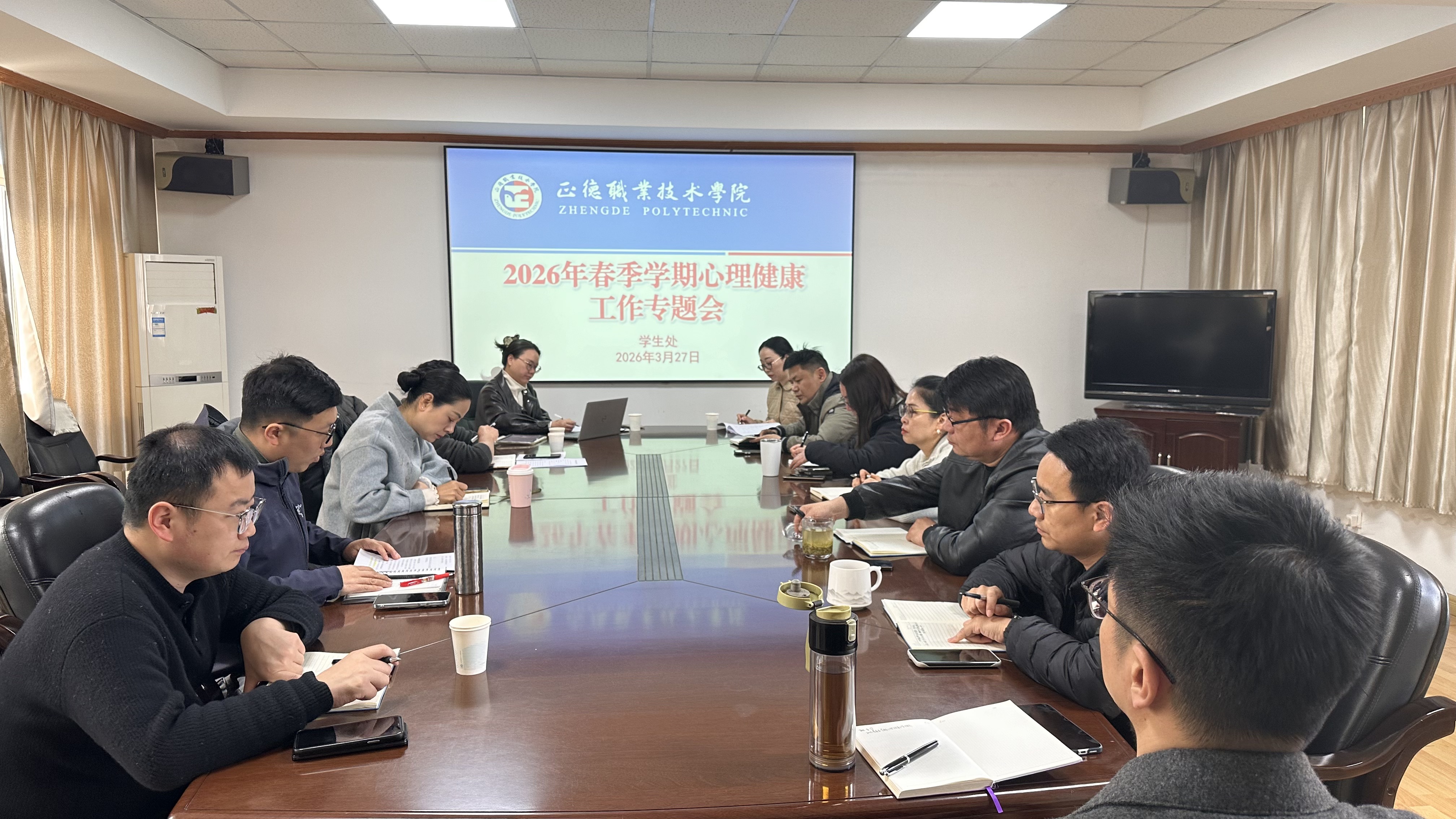 为深入贯彻落实教育部“健康第一”教育理念及全省高校春季学期学生心理健康教育工作视频会精神,全面部署学院心理健康教育各项工作。3月27日上午,成人抖音 在行政楼二楼会议室召开2026年春季学期心理健康工作专题会,院党委副书记、副院长梁薇出席会议,学生处、团委负责人、各系分管学生工作负责人、各系心理健康兼职辅导员以及心理中心工作人员参加会议。会议由学生处处长祝佳俊主持。