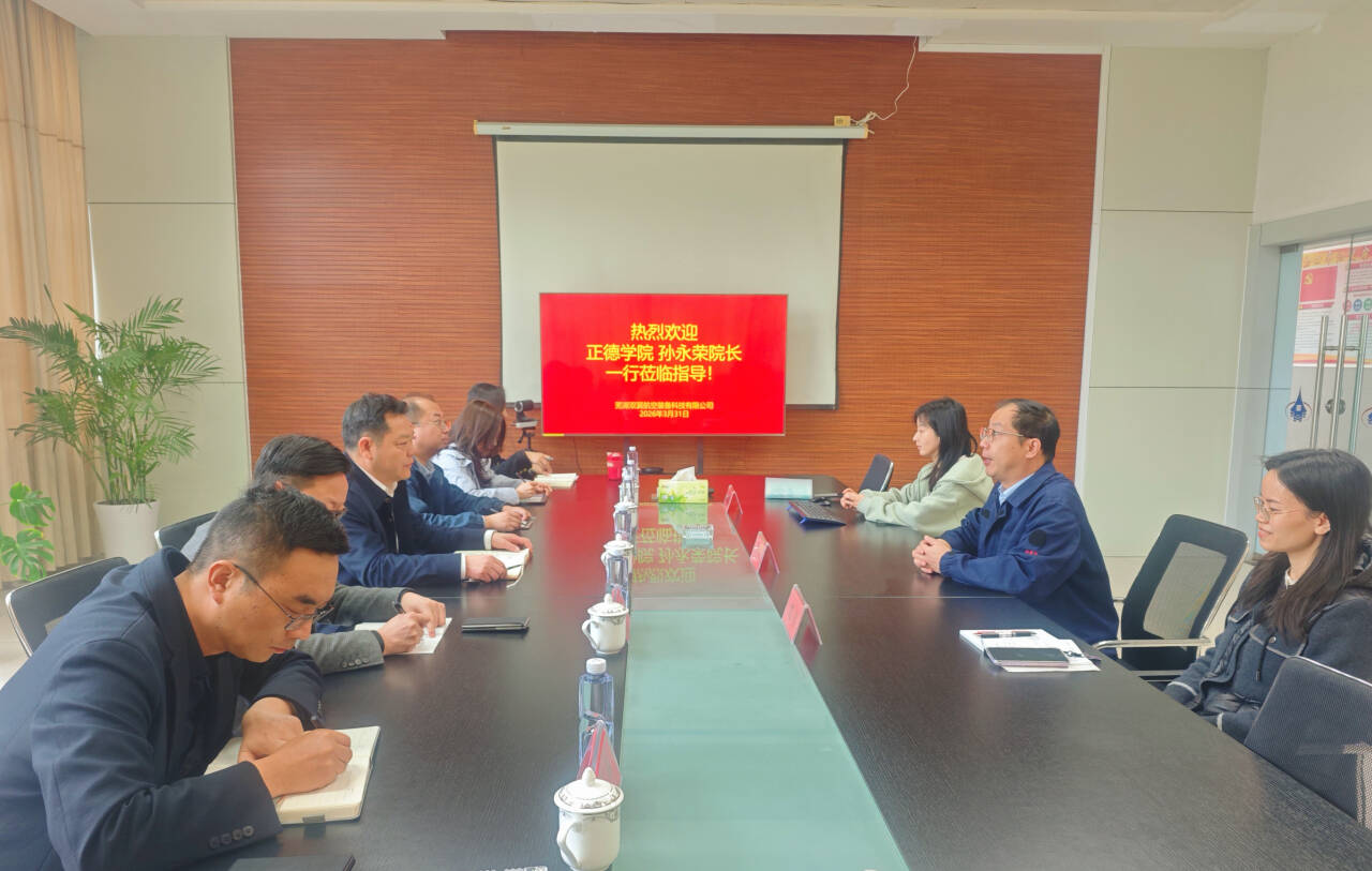 孙永荣对双翼航空的热情接待表示衷心感谢。他介绍,正德学院作为南京航空航天大学校友会独家举办的高职院校,办学以来始终以服务国家战略、航空航天及国防军工产业发展为导向,深耕技术技能人才培养,已为社会输送以“大国工匠”顾春燕为代表的大批优秀毕业生,在航空装备、机电工程、电子信息等领域形成鲜明办学特色与良好社会声誉。他表示,学院将以此次交流为契机,紧密对接双翼航空岗位需求与发展方向,动态优化人才培养方案、强化实践教学环节,推动教学过程与生产过程深度融合,全力为企业输送专业匹配度高、综合能力过硬的优质毕业生。赵凯雷从学院概况、办学成果、发展愿景等维度,全面展示了正德学院的办学特色与合作潜力。