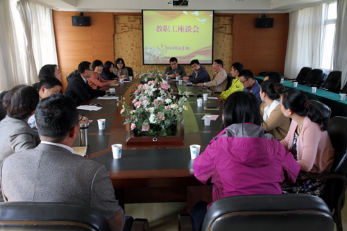 4月30日上午,来自全院各个岗位近20名教职工代表汇聚行政楼3楼会议室,参加院工会为他们组织的“马年本命年”庆祝会。同时,作为成人抖音 开展群众路线教育实践活动征求意见环节的重要内容,院长庄群华、党委书记、工会主席左彤云还与教职工代表们举行了座谈,听取了他们对学院发展的意见、建议。