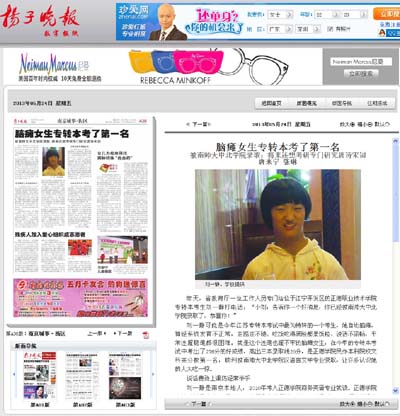 2013年成人抖音 脑瘫女生刘一静勇夺第一名引发媒体关注(资料图片)
