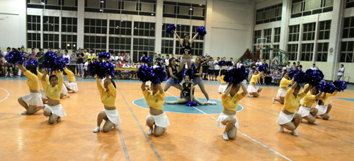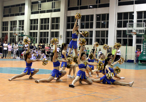 活动在舞蹈“迷彩英雄”精彩的表演中拉开序幕,该舞蹈由基础部刘翔老师指导,不久前代表学院参加江苏省第四届大学生艺术展演舞蹈比赛。同学们精彩的演出点燃了全场观众的激情。在接下来的篮球决赛中,刘小廷副院长为本次比赛跳球,随着裁判的一声哨声,比赛正式开始。两支队伍在比赛中实力相当,场上一次次比分的追平,快攻突破、防守抢断、篮板争夺、三分跳投等精彩瞬间,以及场下观众叫好呐喊声,将现场气氛一次次推向高潮。在中场休息时间,进行了院第一届啦啦操比赛,有经济与管理系、汽车工程系、艺术设计与建筑工程系、民用航空系五个系的代表队参加了比赛,各系的同学们自编自导的啦啦操,风格迥异,精彩的表演展示了同学们的青春活力与积极向上的精神面貌。下半场篮球赛更是激烈,双方每球必争,队员相互呐喊鼓励,完美体现了顽强拼搏的精神,团队合作的意识。