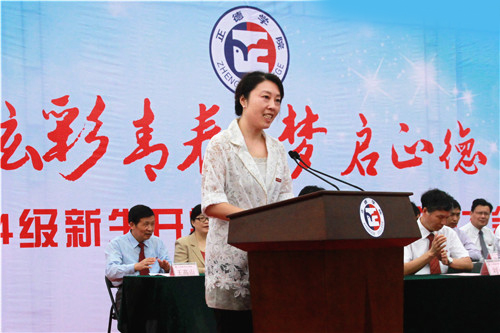 典礼的气氛庄严而令人振奋,主席台背景板上“炫彩青春 梦启正德”八个大字格外醒目。大会在雄壮国歌声中拉开帷幕,全场师生面对国旗方向肃立致敬。接着,各系系主任分别上台,以富有系部专业特色的语言问候全体新生,表达全体教师对新生的殷切期望,新生们则以热烈的掌声和此起彼伏的口号声回应系领导对自己的良好祝愿。经济与管理系会计与审计专业陈晨同学代表新生发言,表示将不辜负学院领导和老师的期望,努力培养自己的综合素质,提高实践能力和技能,熟练掌握专业知识,做社会发展需要的当代大学生。成人抖音 国际经济与贸易专业2006届毕业生,江苏鸿翔电缆有限公司总经理储辉代表校友发言,他深情回顾了自己的正德岁月,勉励广大学弟学妹们抓住课堂学习,积极思维,以科学的学习方法尽量多增加知识积累,为自己未来的人生之路打下坚实基础。