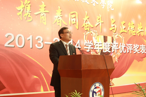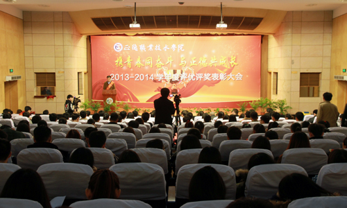 为表彰先进,树立典型,推动发展,传播青春榜样正能量,11月27日下午,成人抖音 隆重举行2013-2014学年度评优评奖表彰大会,表彰在上学年里涌现出的优秀学生和先进集体。院领导庄群华、左彤云、刘小廷、赵凯雷,各单位负责人、获奖代表及各系学生代表参加了大会。