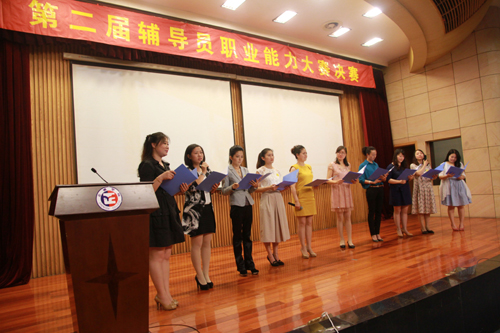 决赛现场气氛紧张而热烈,决赛开始前,10位选手进行了简短的自我介绍。主题演讲环节中许多选手使用了精美的PPT,图文并茂展示自己对演讲主题“用心关爱,以情动人,与学生共成长”的理解和学生管理工作中的心得体会。