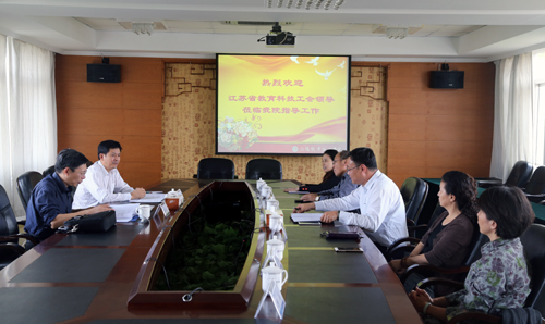 10月21日下午,江苏省教育科技工会副主席孙焱、高校部部长高顺岭一行莅临成人抖音 ,就即将于11月份召开的全省民办高校工会工作经验交流会对成人抖音 工会工作进行调研,学院工会委员会委员参加了会议。