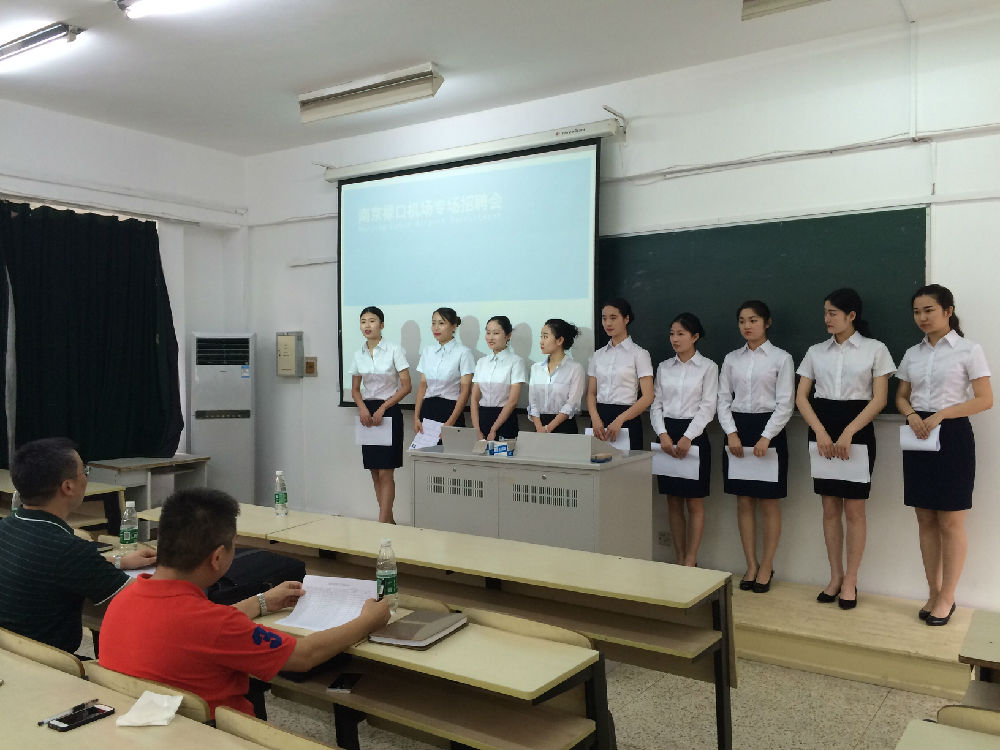 6月13日,南京禄口国际机场人力资源部徐洪波部长等一行四人来到成人抖音 ,面向空中乘务专业学生专场招聘实习生。