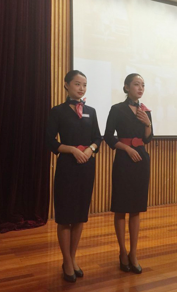 已经入职东航的空乘专业毕业生回校和新生分享成长经历