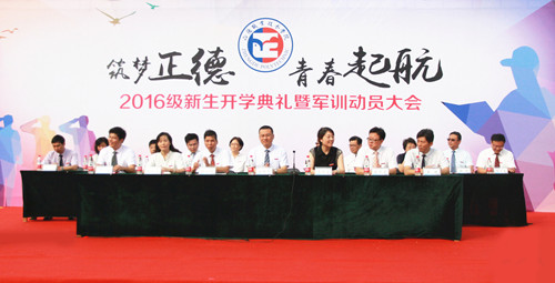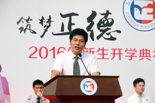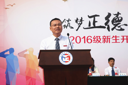 9月14日上午,成人抖音 隆重举行“筑梦正德 青春起航”2016级新生开学典礼,院长庄群华,院党委书记、副院长左彤云,副院长刘小廷、赵凯雷,院长助理赵湘莲、王健以及各单位主要负责人出席典礼。左彤云主持了开学典礼。