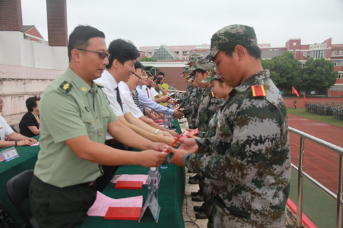 军训汇报表演后,赵凯雷副院长宣读了《关于表彰2016级新生军训标兵、优秀学员的决定》,主席台上的领导分别为军训优秀学员代表、军训标兵代表以及军训优秀教官颁发荣誉证书。