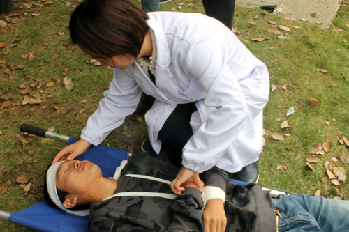 宿舍管理人员一边现场扑救一边向值班员报警,值班员立即向保卫处汇报情况,同时组织学生向公寓楼外逃生疏散。北区微型消防站接到通知后,义务消防员在3分钟内赶到现场灭火。卫生所接到火警报告立即组织医务人员到现场进行救治。水电专业人员赶赴现场进行断电、保证供水(消防用水)工作。学生迅速有序安全疏散至楼下并立队清点各宿舍人数,一切都有条不紊,忙而不乱。此次11.9宣传日演练的成功举行,增强了学生了解安全知识,提高了火场逃生自救的能力,提高了宿舍管理人员和新生的消防安全意识以及消防应急处置能力,同时,对学生宿舍消防设施进行了检验。