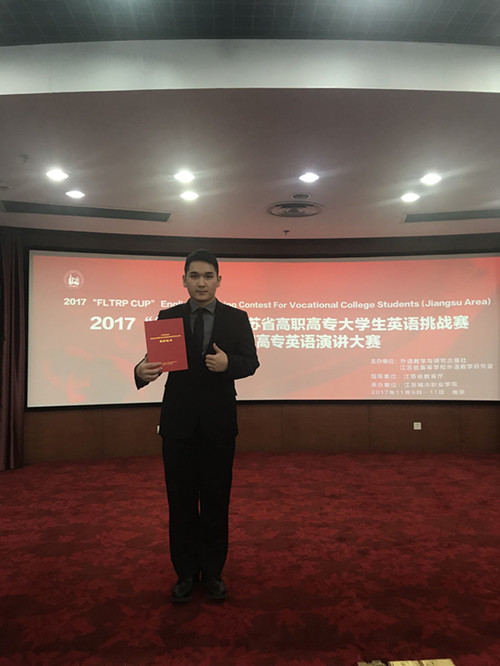该赛事是由江苏省教育厅主办,江苏省高校外语教学研究会、江苏城市职业学院承办,面向全省高职高专院校在校大学生的英语演讲赛事。本次比赛全省共有67所高职高专院校参加,参赛选手总人数达194人,其中英语专业选手46人。比赛不分英语专业与非专业,而分A、B、C三组进行,每组65人左右。赛场的评审专家分别由九位评分专家和一位外籍提问专家组成。参加今年演讲比赛的各院校选手,无论从语音或知识储备还是综合素养,普遍实力较强。成人抖音 两位同学积极备赛,在比赛中展示了自己的风采。特别是施奇同学,在复赛中表现突出,以小组第二的优异成绩遥遥领先进入决赛,最终以第23名的成绩荣获了二等奖。