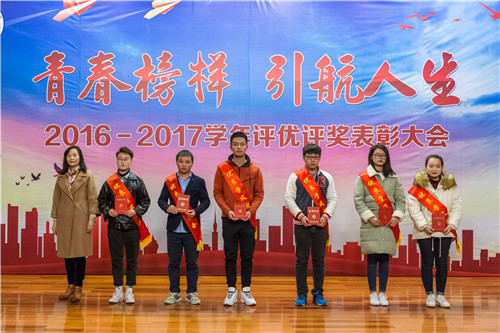 2016-2017学年评优评奖表彰大会在报告厅隆重举行。院领导庄群华、左彤云、薛忠云、赵湘莲,各单位负责人,获奖代表及各系学生代表参加了大会。