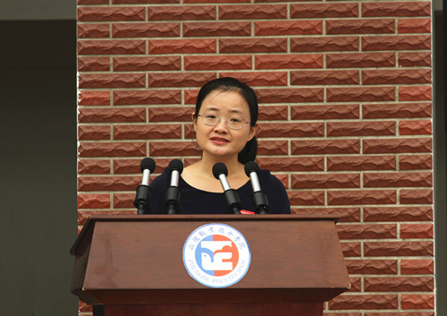 在奏唱国歌仪式后,基础教育系汪小艳老师发言,表达对广大新生的良好祝愿,并且对新生如何度过未来的大学生活提出中肯的建议。