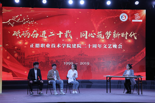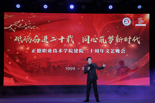 晚会由自强奋进•忆往昔、璀璨辉煌•看今朝、同心筑梦•谱华章三个篇章组成,以“正德红”作为主基调,融合歌、舞、朗诵、情景剧等多种表演形式,将正德学院20年来风雨兼程开拓创新的发展历程一一呈现。
