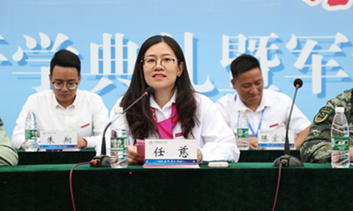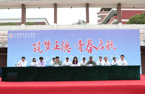 副院长任慈简要介绍前来承训的武警江苏总队机动支队,并对全体官兵表示热烈的欢迎。她在发言中讲到“这是正德学院建院21年以来最凉爽的一次军训”引发同学们热烈响应。她对参加军训的全体新同学表示最美好的祝愿,并时指出参加军训是作为一个公民应尽的义务和职责,也是加强国防建设和成长成才的需要。同时对同学们提出三点要求:第一、端正态度,服从命令。第二、全力投入,顽强拼搏。第三、劳逸结合,保护好自己。