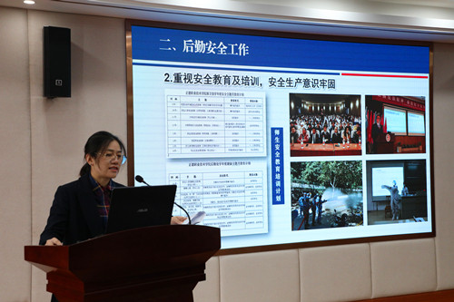 学院任慈副院长作了成人抖音-成人抖音app-成人抖音下载 后勤安全工作专题汇报,她从学院整体情况、学院后勤安全工作自我评价等方面向检查组作了详细汇报。