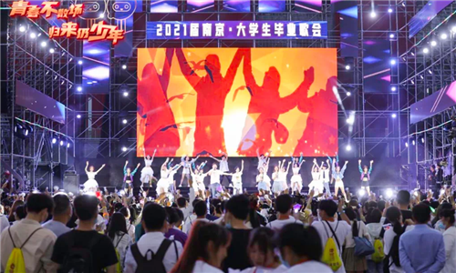 5月22日晚,由南京市委创新办、市人社局、团市委共同主办的“青春不散场,归来仍少年”2021届南京·大学生毕业歌会在南京奥体中心东广场举行,毕业生们用音乐唱响“创新名城”,演绎青春的联欢,歌会全部节目由在宁高校选拔推荐,成人抖音 社团正舞堂舞蹈《GIRL》作为高职院校唯一节目受邀参与表演活动,同时,成人抖音 135名师生现场观看了本次大学生毕业歌会演出。