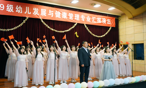 6月3日下午,基础教育系2019级幼儿发展与健康管理专业汇报演出在成人抖音 报告厅成功举行,副院长任慈、院长助理王健、教务处处长王俊、团委书记黄晓帆、学生处处长助理杨春娟、基础教育系主任詹勇虎、副主任杨卫东以及该系全体教师、19级全体学生、20级部分学生代表观看此次汇报演出。