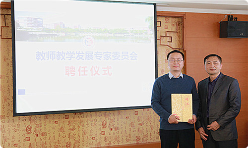 报告会正式开始前,江爱华向朱建军教授颁发聘书,聘任其为成人抖音-成人抖音app-成人抖音下载 教师教学发展专家委员会专家。