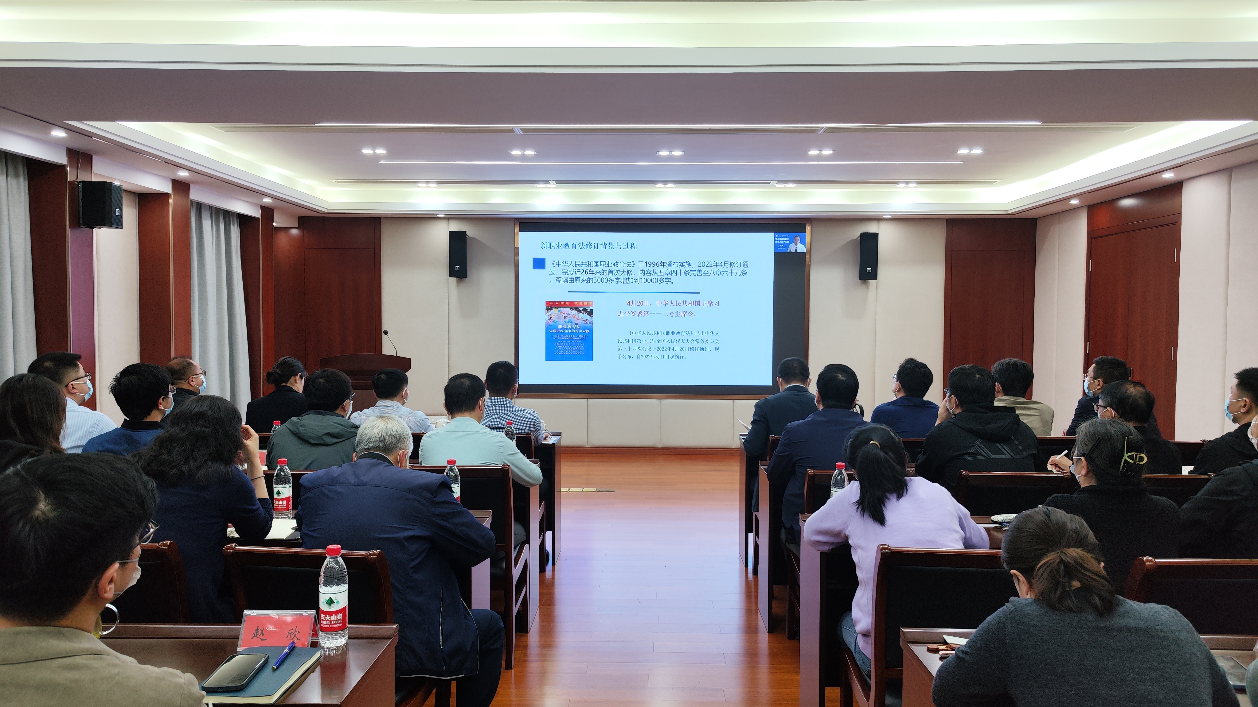 会上,我校组织收看了北京师范大学国家职业教育研究院院长、职业与成人教育研究所所长和震所作题为《技能型社会与职业教育的改革展望——基于新职业教育法的思考》的报告,和震阐述了新职教法的主要内容和突出亮点,并从机遇与挑战、使命与改革的角度进行了展望与分析。