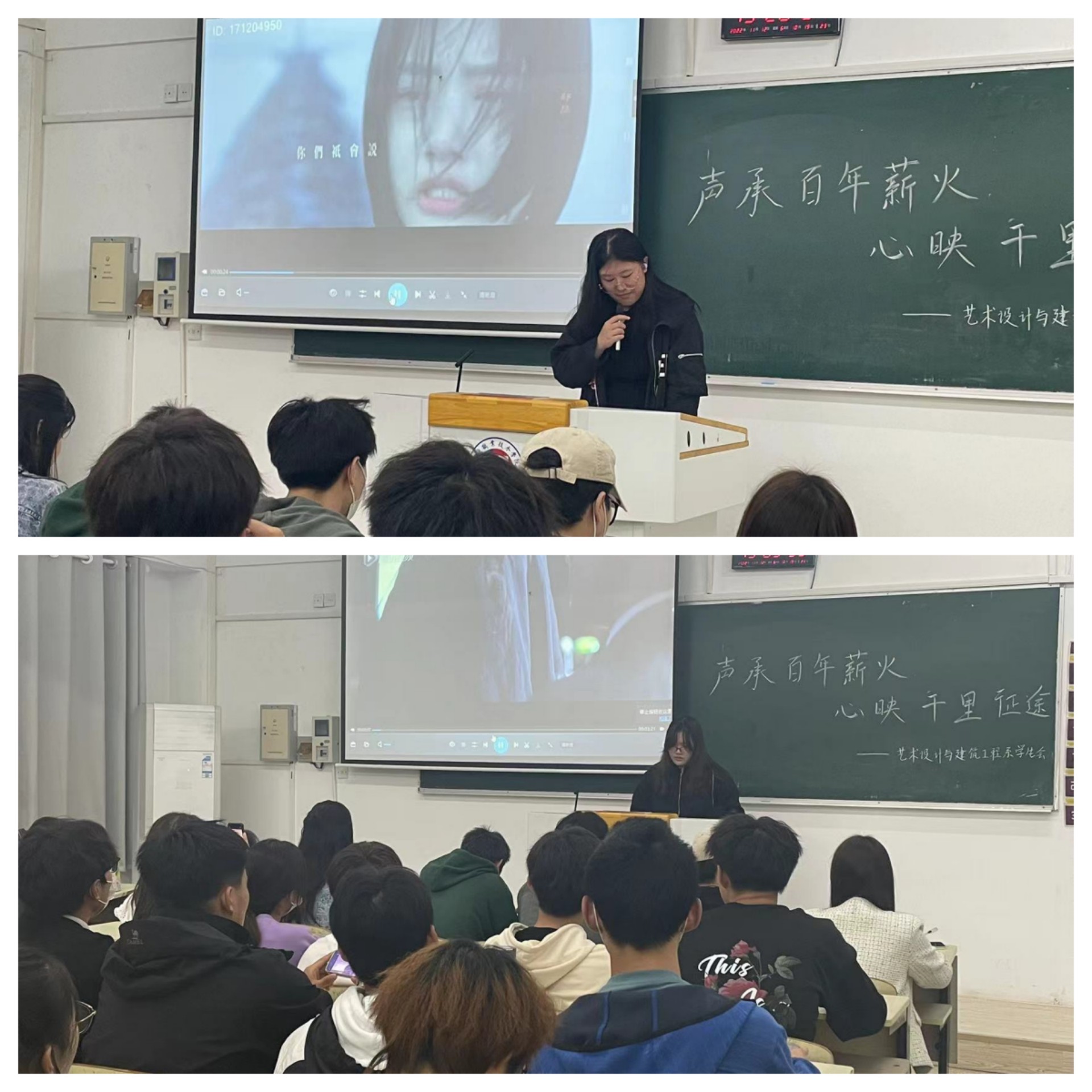 为了丰富同学们的课余生活,提高团队合作能力,成人抖音-成人抖音app-成人抖音下载 艺建系学生会举办了“声承百年薪火,心映千里征途”为主题的红色经典配音大赛,比赛于2022年11月21日在2206教室举办。本次比赛特邀院新闻媒体中心主任吴宋俣同学做主评委,艺建系学生会秘书部部长周涵同学及其他各班学生代表现场投票打分。